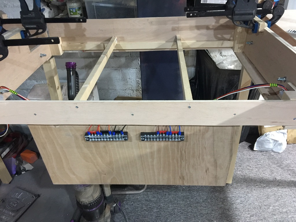 slight irritations, Wickes don't seem to have 2" square timber, so the legs fixing plate needed a small fillet of 12mm ply adding, probably stronger this way.